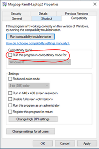 2. Make sure the installed MagLog program is not running. If it is running in the background you will need to go to the task manager and manually close the program by selecting end task. For those that may have used to compatibility work around, revert back to default by unclicking Compatibility mode in the Properties>Compatibility menu of the MagLog software.
